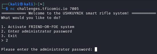 Para acceder a los rifles inteligentes de los piratas, necesitamos conectarnos a la consola. Una vez conectados, se nos pide la contraseña de administrador.