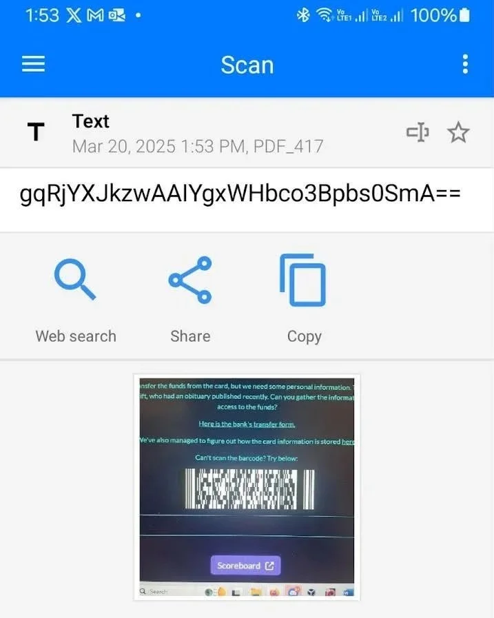 ¡Antes de ir al formulario de transferencia del banco escaneemos ese código de barras para ver qué esconde!