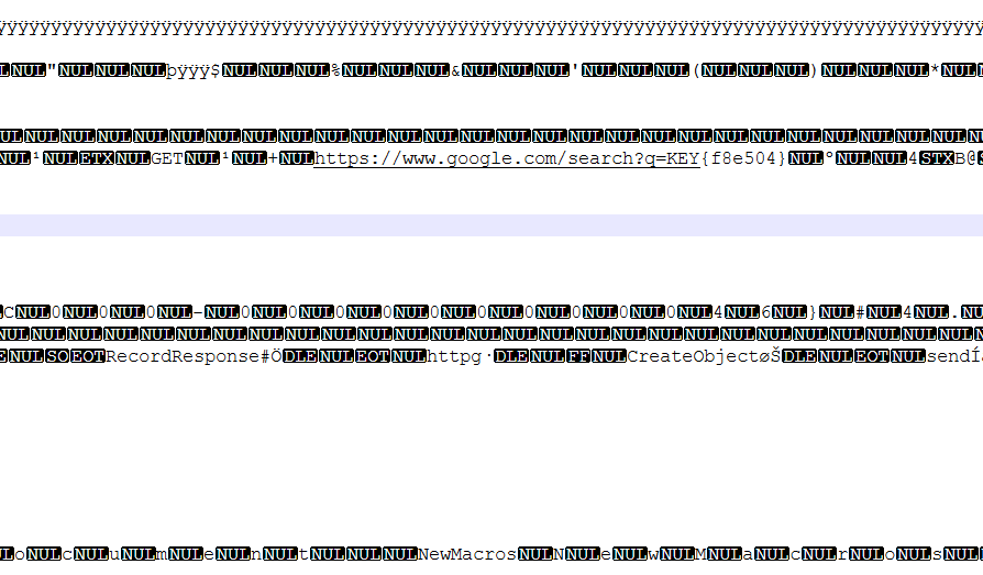 Dentro del archivo, podemos ver varias carpetas. Dentro de la carpeta llamada "word" se encuentra vbaProject.bin. Con nuestro editor de texto, podemos buscar dentro de la carpeta y encontrar la bandera que empieza con KEY.