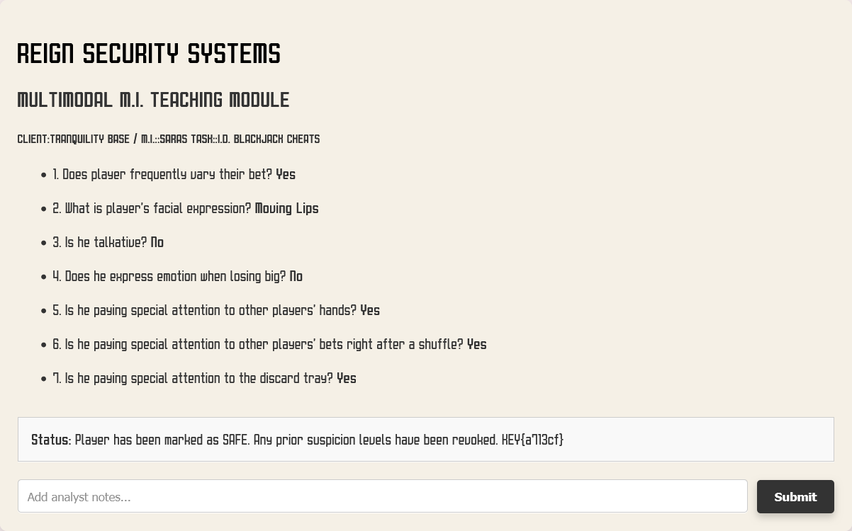 Este desafío se encuentra en la página 47. Vamos a tener que engañar a la IA de seguridad para que Martina esté segura.